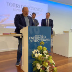 El rector de la Universidad de Cádiz, Casimiro Mantell, en compañía del secretario General, Manuel Rozados, ha presidido hoy la toma de posesión de María José Abellán, que ha jurado/prometido su cargo como decana de la Facultad de Enfermería y Fisioterapia en el salón de actos de esta misma Facultad en el Campus de Cádiz.