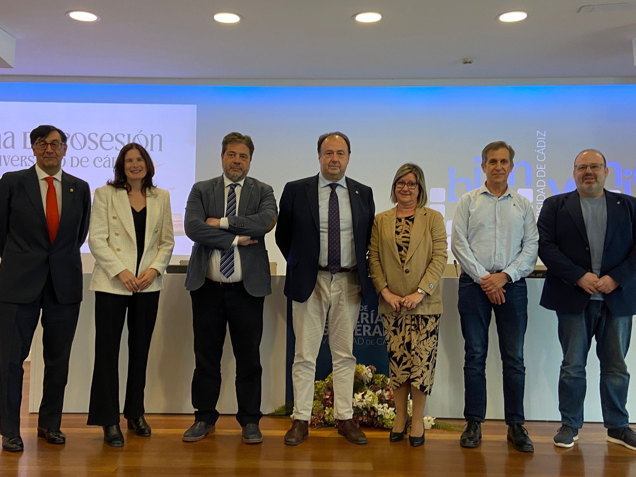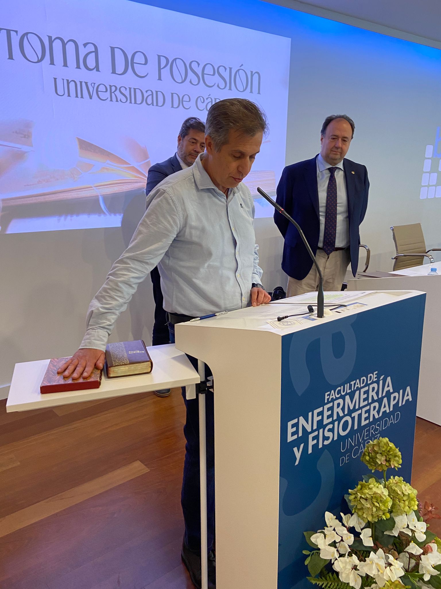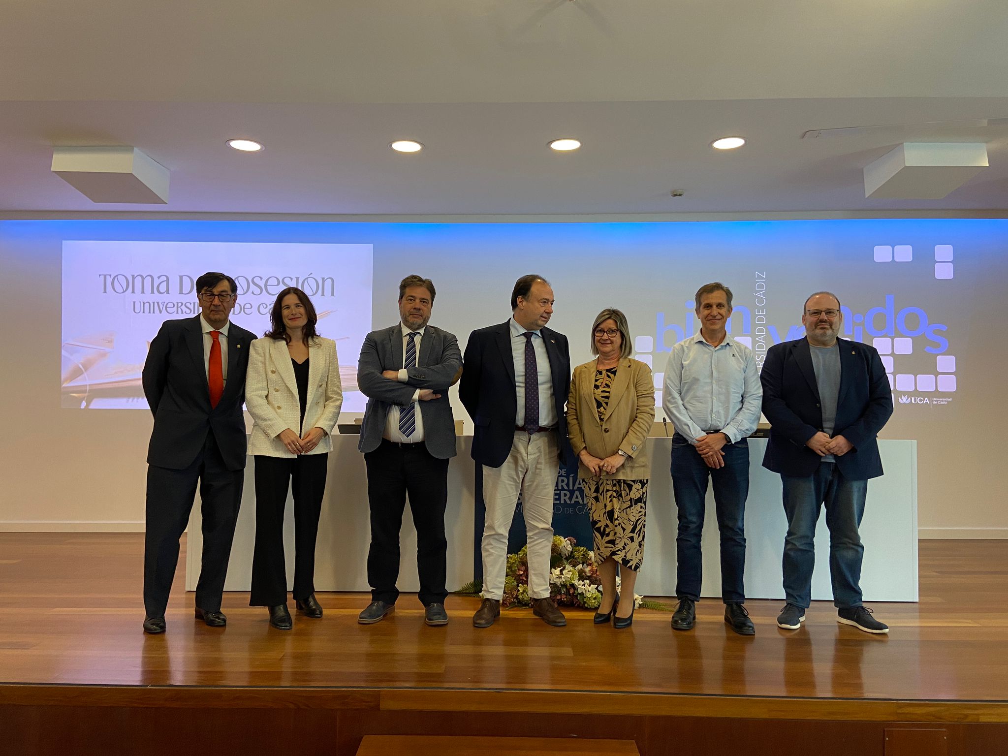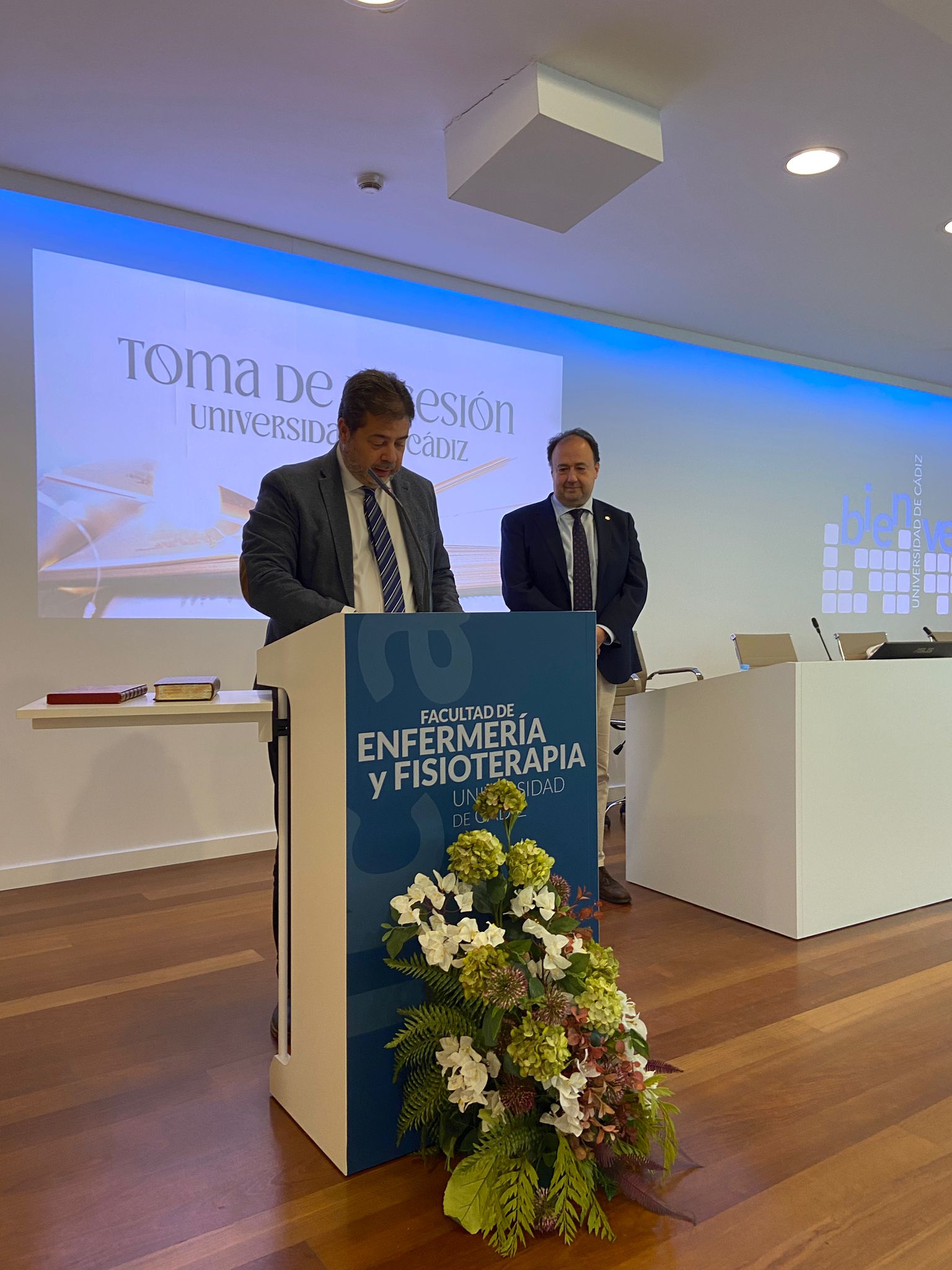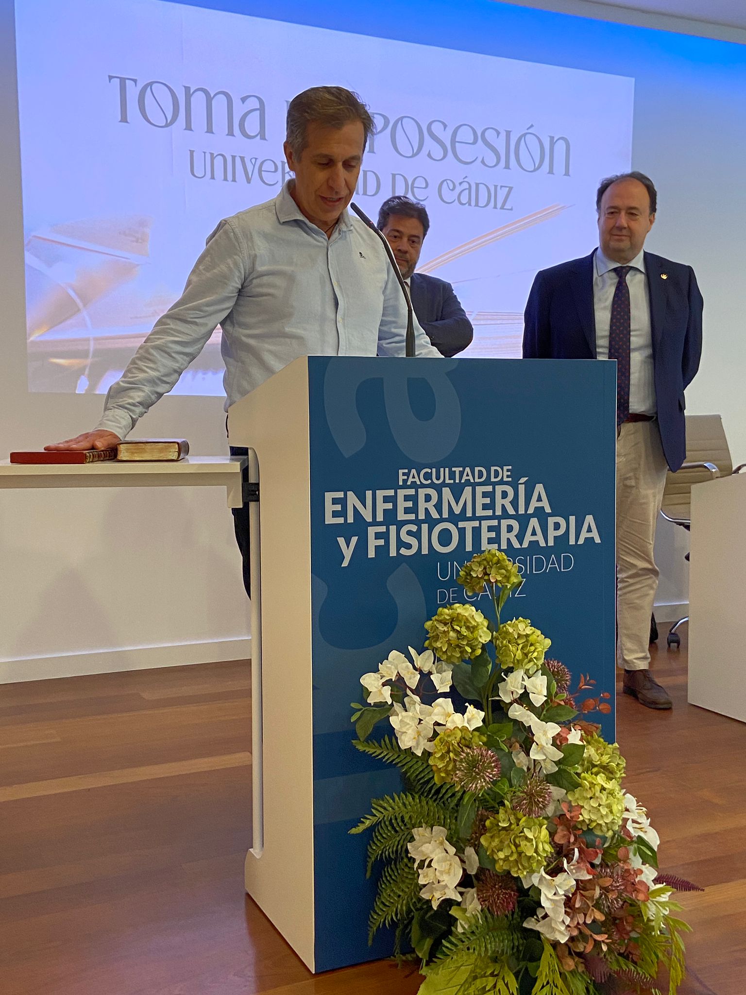 El rector de la Universidad de Cádiz, Casimiro Mantell, en compañía del secretario General, Manuel Rozados, ha presidido hoy la toma de posesión de María José Abellán, que ha jurado/prometido su cargo como decana de la Facultad de Enfermería y Fisioterapia en el salón de actos de esta misma Facultad en el Campus de Cádiz.