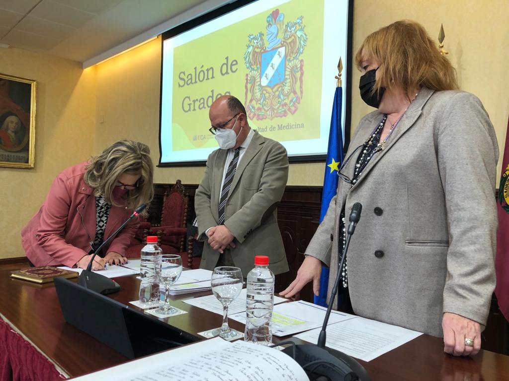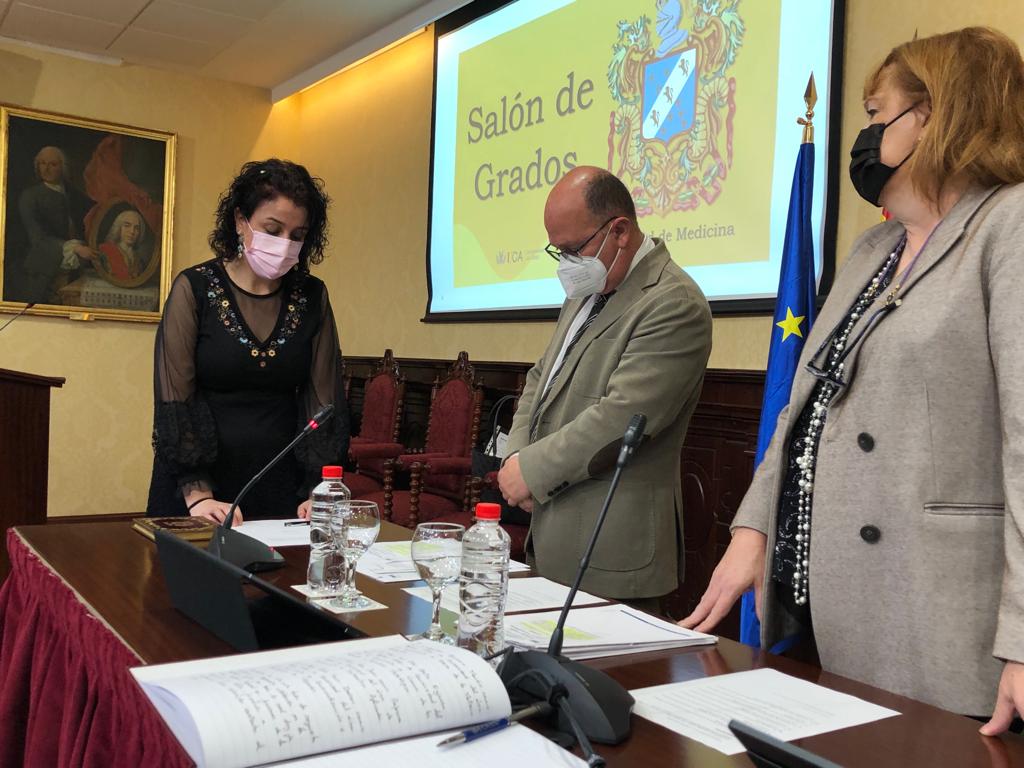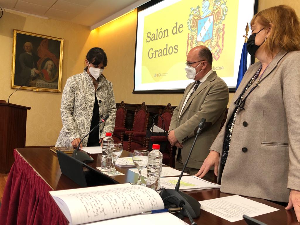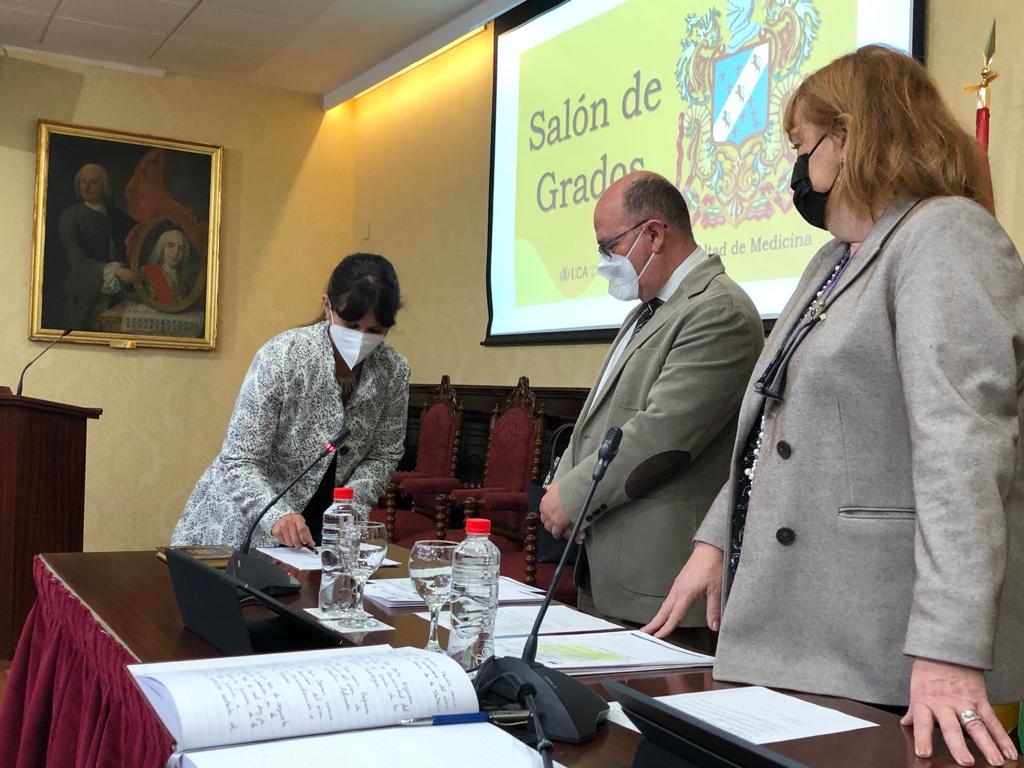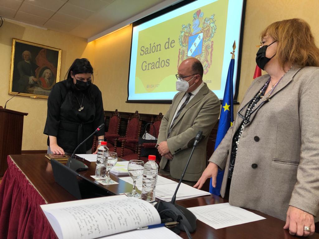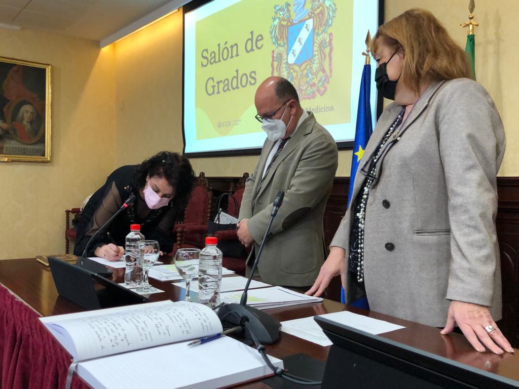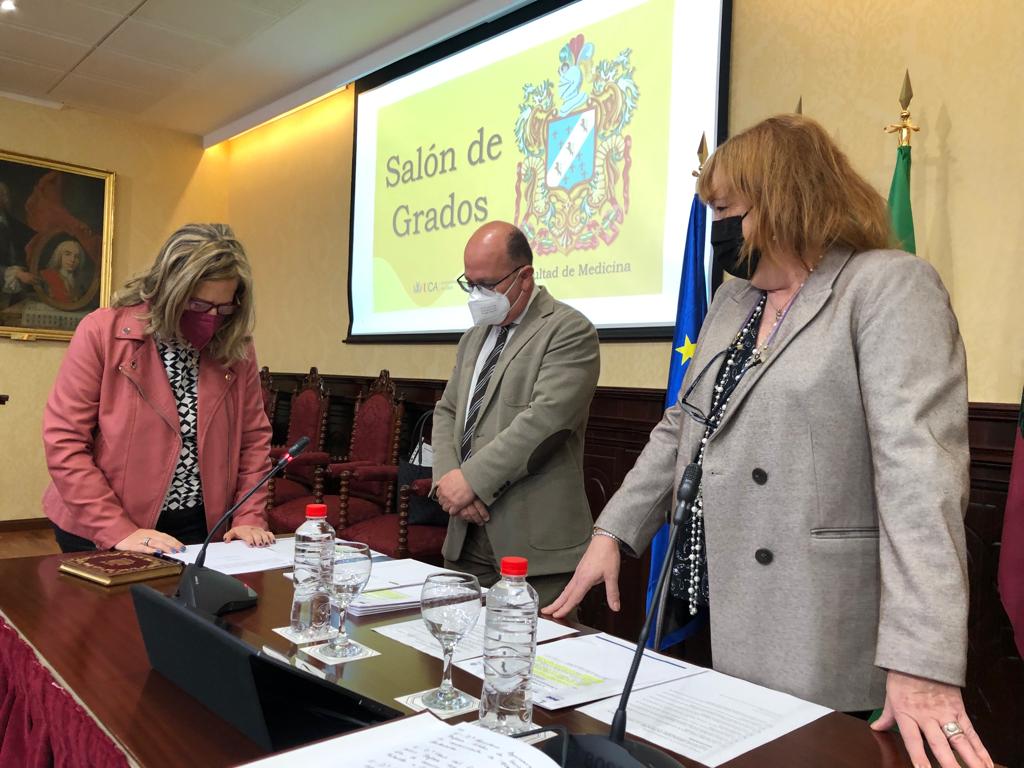 La vicerrectora de Política Educativa de la Universidad de Cádiz, Eva Garrido, junto con el secretario General en funciones, Manuel Gómez, ha presidido hoy, en el salón de Grados de la Facultad de Medicina, la toma de posesión de ocho profesoras y profesores titulares de diferentes áreas de conocimiento.