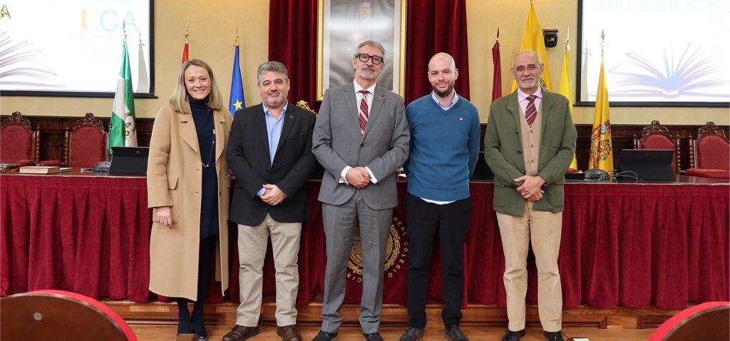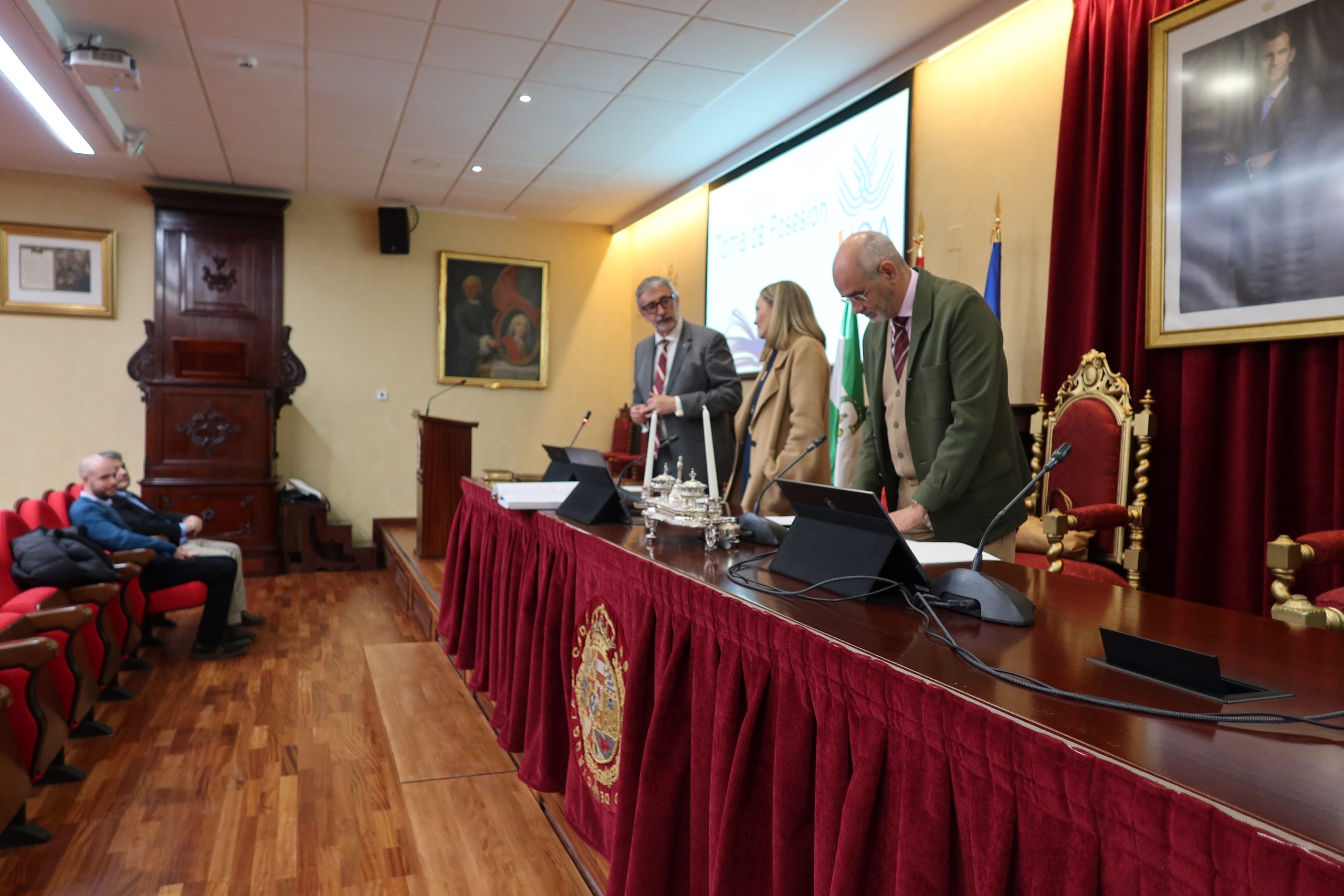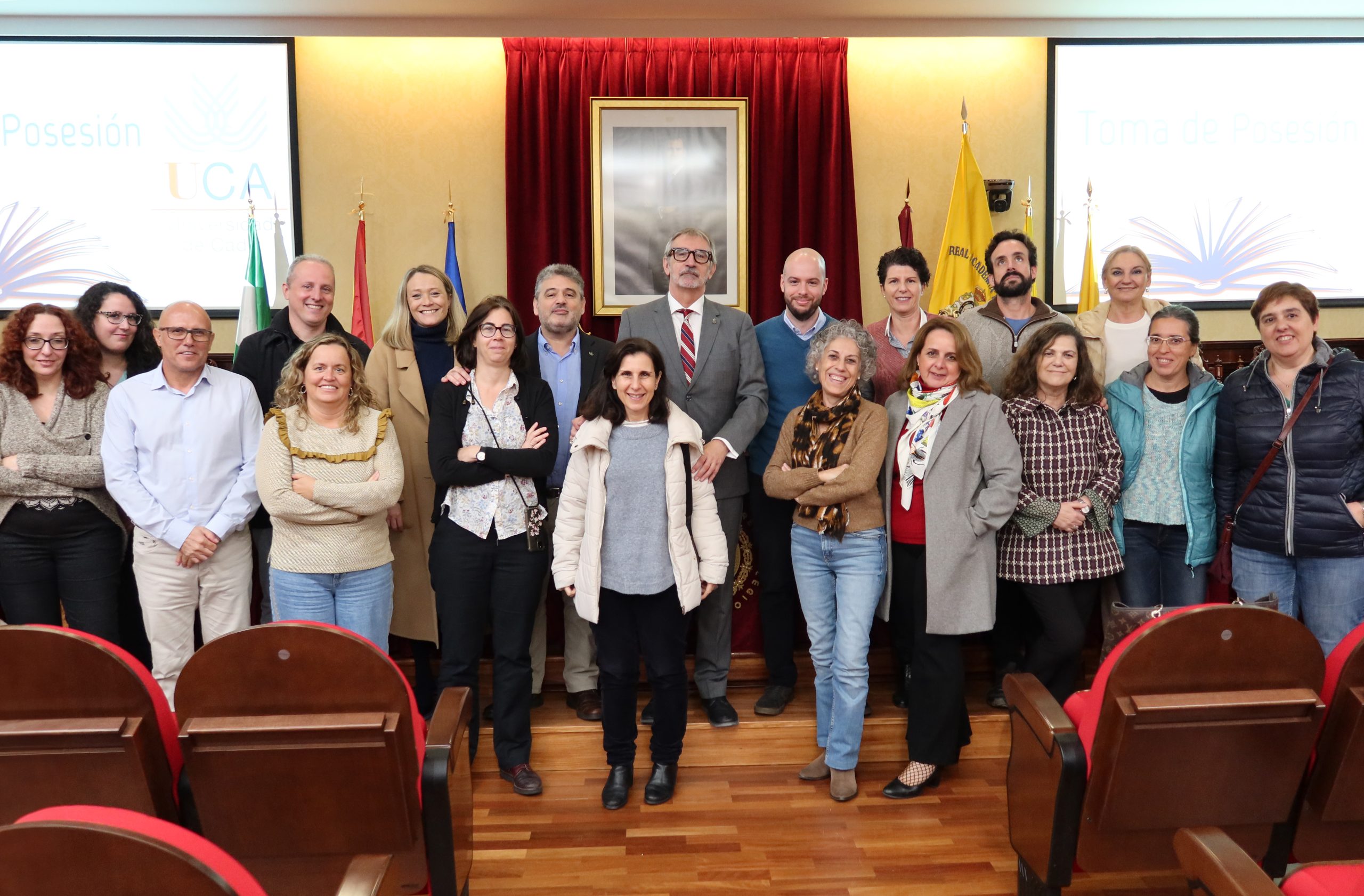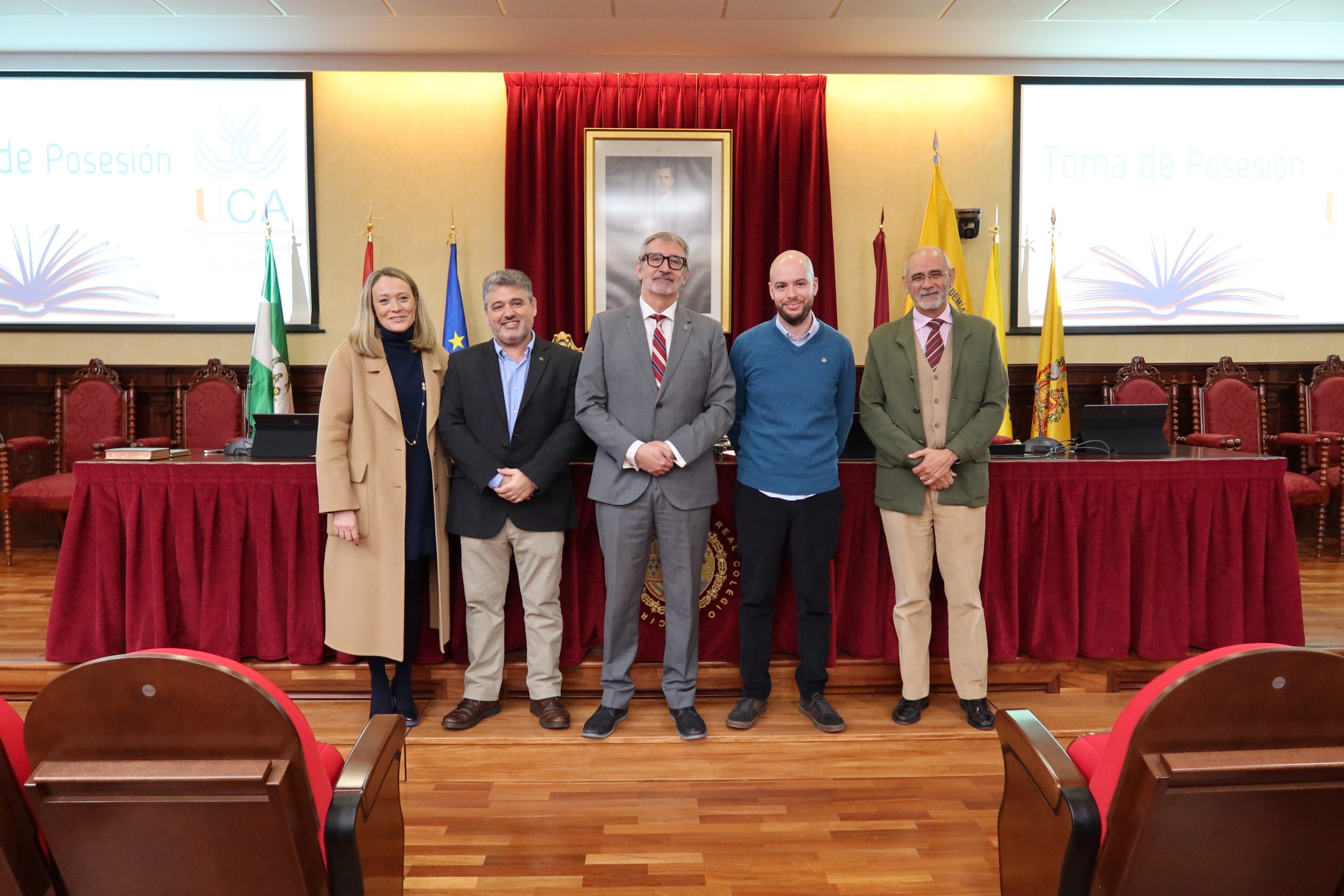 El rector en funciones de la Universidad de Cádiz, Francisco Piniella, junto con el secretario General en funciones de la UCA, José Justo Megías, y la gerente en funciones de la UCA, Mariví Martínez, ha presidido hoy, en el salón de Grados de la Facultad de Medicina, la toma de posesión de personal de Biblioteca, Archivo y Publicaciones de la Universidad de Cádiz.