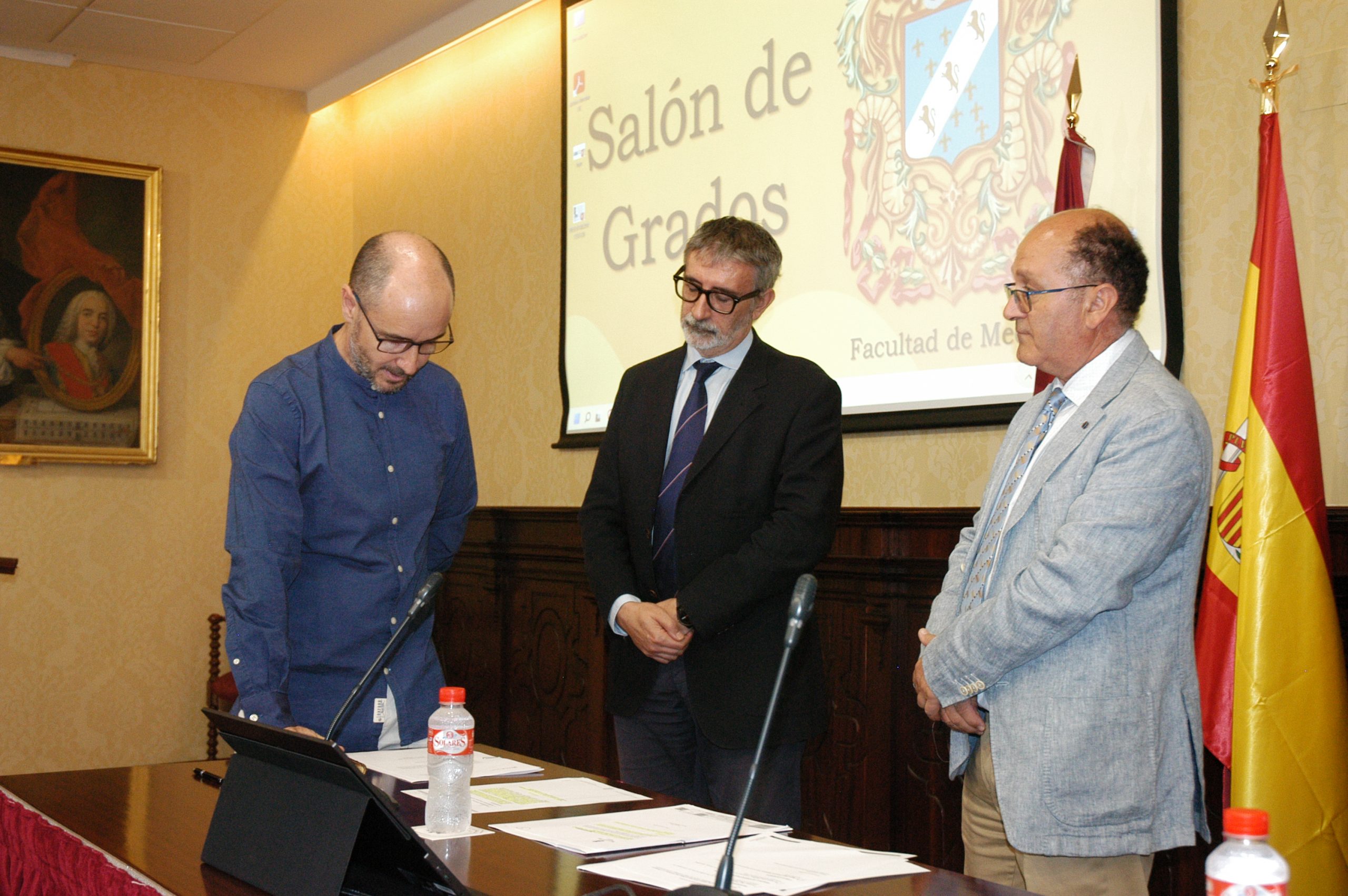 El rector de la Universidad de Cádiz, Francisco Piniella, junto con el secretario General en funciones, Manuel Gómez, ha presidido hoy la toma de posesión de profesorado, personal y administración y servicios y cargo académico en el salón de Grados de la Facultad de Medicina