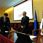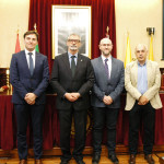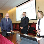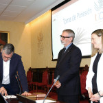 El rector de la Universidad de Cádiz, Francisco Piniella, en compañía del secretario General, José Justo Megías, y la gerente, Mariví Martínez, ha presidido hoy la toma de posesión del decano de la Facultad de Ciencias, un cargo académico, dos catedráticos y tres funcionarios del Personal de Administración y Servicios en el salón de Grados de la Facultad de Medicina.