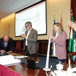 El rector de la Universidad de Cádiz, Francisco Piniella, en compañía del secretario General, José Justo Megías, y la gerente, Mariví Martínez, ha presidido hoy la toma de posesión, en el salón de Grados de la Facultad de Medicina, del decano de la Facultad de Ciencias del Trabajo y dos funcionarios del área de Biblioteca, Archivo y Publicaciones.