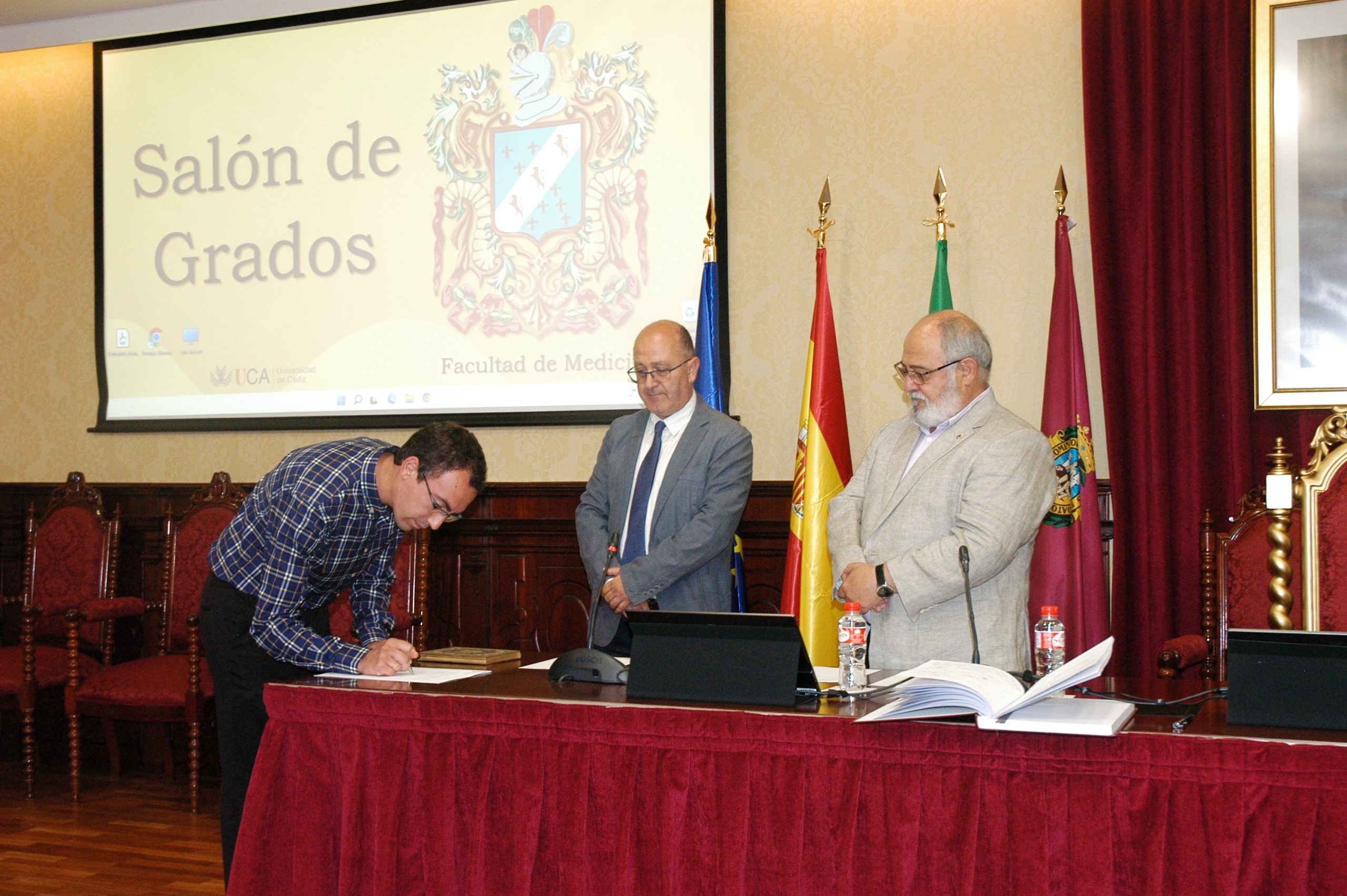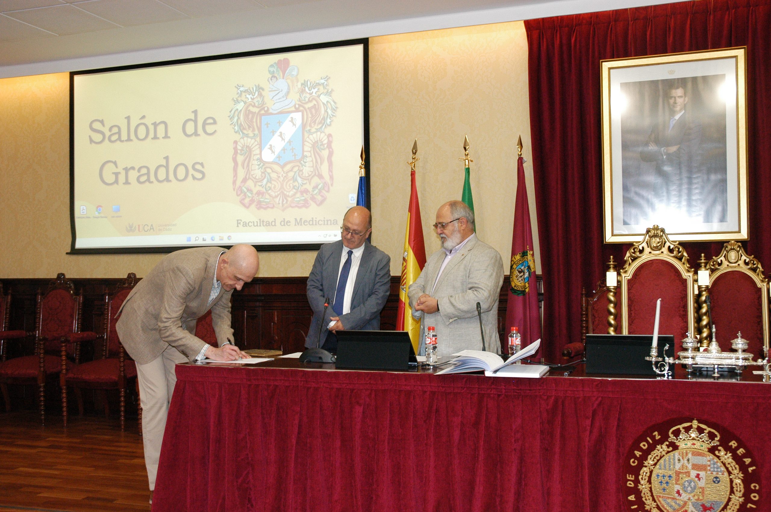 El vicerrector de Profesorado de la Universidad de Cádiz, Manuel García Sedeño, junto con el secretario General en funciones, Manuel Gómez, ha presidido hoy, en el salón de Grados de la Facultad de Medicina, la toma de posesión de nuevos cargos académicos.