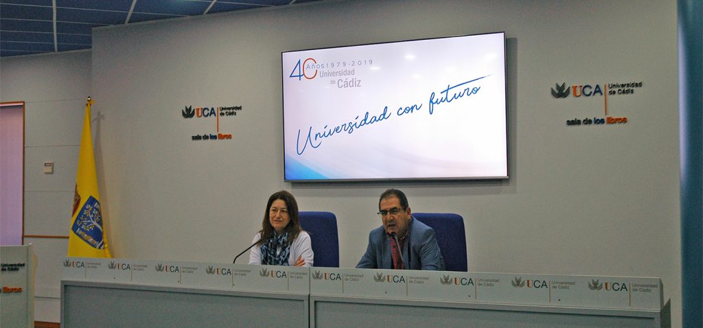 La vicerrectora de Ciencias de la Salud de la Universidad de Cádiz, Ana García Bañón, en compañía del director de secretariado de Ciencias de la Salud para la Universidad Saludable de la UCA, Emilio Francisco Ignacio, ha presentado hoy, en la sala de Los Libros del edificio Andrés Segovia, las nuevas acciones previstas en el marco del programa y marca UCA Saludable para informar de los buenos hábitos y prevenir sobre los malos, dirigidas tanto a la población universitaria como a la sociedad en general.