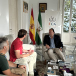 El rector de la Universidad de Cádiz, Casimiro Mantell, se ha reunido hoy en el Rectorado con la comisión ejecutiva de la Asociación de Jóvenes Empresarios de Cádiz, liderada por su presidente, Juan Antonio Parra. Los ha acompañado la vicerrectora de Emprendimiento y Empleabilidad, Carmen Camelo.