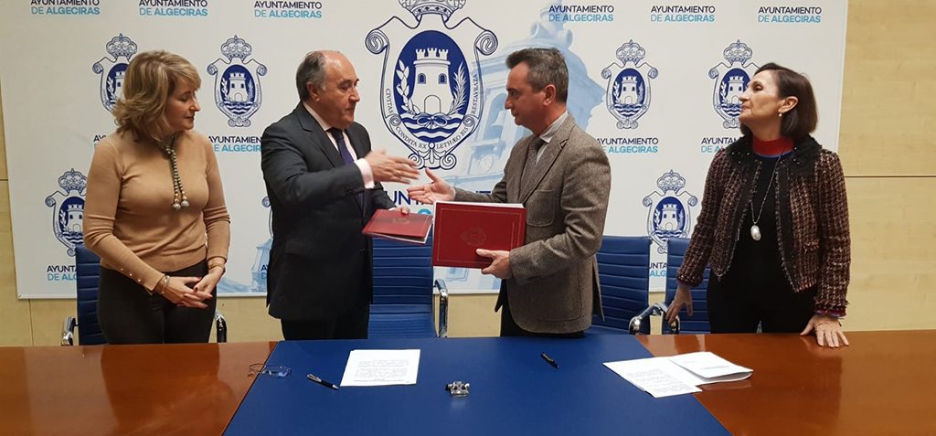 El alcalde de Algeciras y el rector de la Universidad de Cádiz han suscrito también este mediodía un convenio específico de colaboración, en el marco del proyecto Algeciras-Barrio de la Caridad: Puerta de Europa del Programa Operativo FEDER de crecimiento sostenible 2014-2020 en el marco de la Estrategia DUSI, para realizar el seminario Iulia Traducta: análisis histórico arqueológico de la ciudad de Algeciras. Desde su fundación al siglo VIII en los próximos Cursos Internacionales de Otoño de la UCA (2019/2020/2021) en Algeciras y la coedición del libro Las cetariae de Iulia Traducta. Resultados de las excavaciones arqueológicas en la calle San Nicolás de Algeciras 2001-2006.