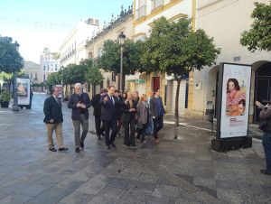 La inauguración de la exposición urbana con carteles de cine de Lola Flores ha contado con la presencia del decano de la Facultad de Ciencias Sociales y de la Comunicación, José Antonio López, y de los directores generales de Relaciones Institucionales y de Comunicación Estratégica de la UCA, Antonio Díaz y Leticia Rodríguez- respectivamente- y -en representación del Ayuntamiento de Jerez- del primer teniente de Alcaldesa y delegado de Presidencia, Centro Histórico, Fondos Europeos y Coordinación, Agustín Muñoz; el segundo teniente de Alcaldesa y delegado de Servicios Públicos, Medio Ambiente y Protección Animal, Jaime Espinar; el cuarto teniente de Alcaldesa y delegado de Turismo y Promoción, Antonio Real; el delegado de Cultura, Fiestas, Patrimonio Histórico y Capitalidad Cultural y Francisco Zurita; el delegado de Desarrollo Educativo, Formación Profesional, Universidades y Deporte, José Ángel Aparicio; además de la delegada territorial de Desarrollo Educativo, Formación Profesional y de Universidad, Investigación e Innovación de la Junta de Andalucía, Isabel Paredes.