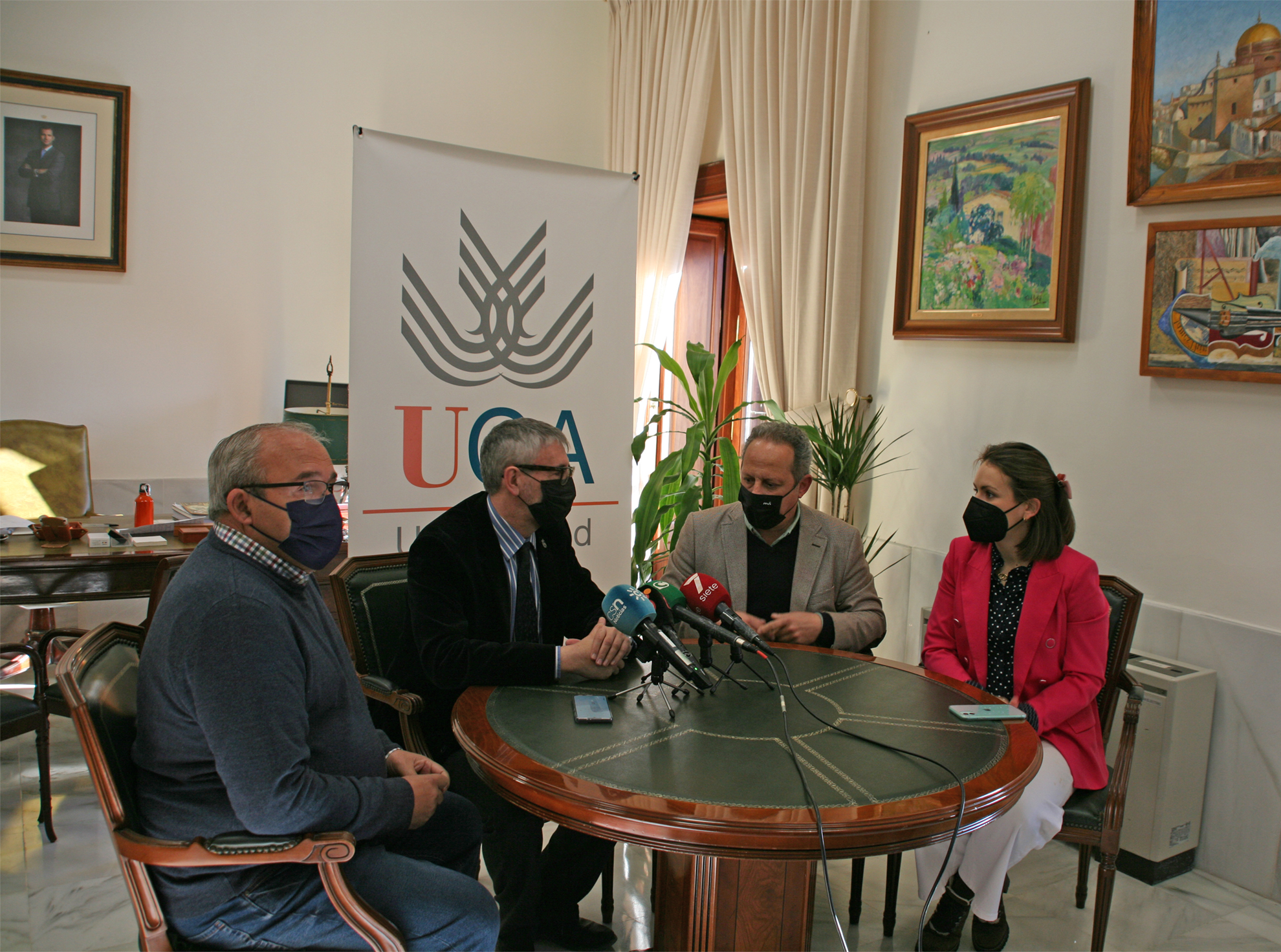 El rector de la Universidad de Cádiz, Francisco Piniella, y el presidente de Cádiz Centro Comercial (CCA), José Amaya, han firmado hoy en el Rectorado, acompañados por el director General de Emprendimiento, Empresa y Egresados (3E) de la UCA, José Manuel Sánchez, y la gerente de CCA, Beatriz Gandullo, un protocolo general de colaboración para el fomento y fortalecimiento del ecosistema emprendedor de la ciudad de Cádiz, a través de acciones de promoción de la cultura emprendedora, formación y asesoramiento, mediante la realización de diferentes actividades y actuaciones.