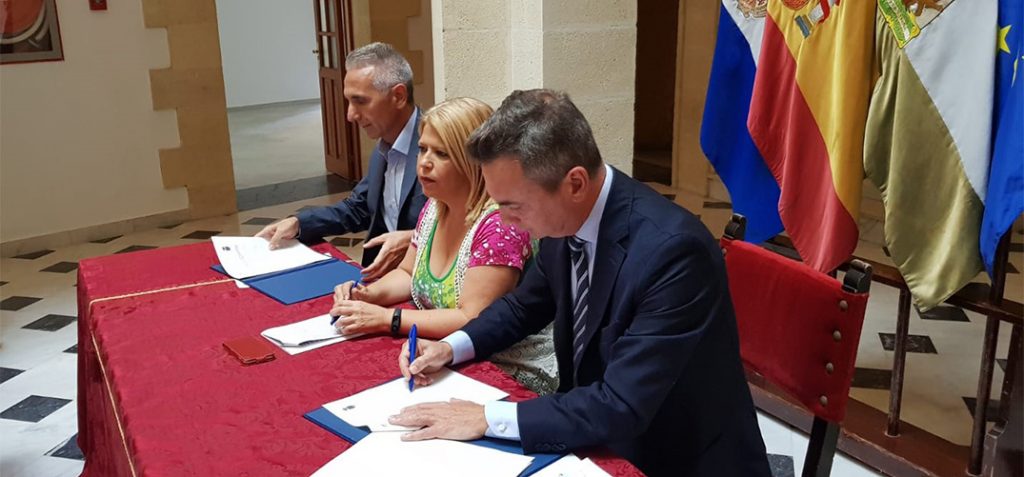 El rector de la Universidad de Cádiz, Eduardo González Mazo, y el consejero de Cultura de la Junta de Andalucía, Miguel Ángel Vázquez, en presencia de la alcaldesa de Jerez, Mamen Sánchez, han firmado hoy en el Palacio de Villapanés de Jerez de la Frontera un protocolo general de colaboración para el impulso del máster interuniversitario en Investigación y Análisis del Flamenco. Se trata del primer posgrado oficial universitario centrado en el flamenco que, con la coordinación de la UCA, se impartirá ya durante este curso 2018/19 en las universidades andaluzas de Cádiz, Córdoba, Huelva, Granada y Pablo de Olavide, y cuyo arranque lectivo está previsto a partir del próximo 26 de octubre.