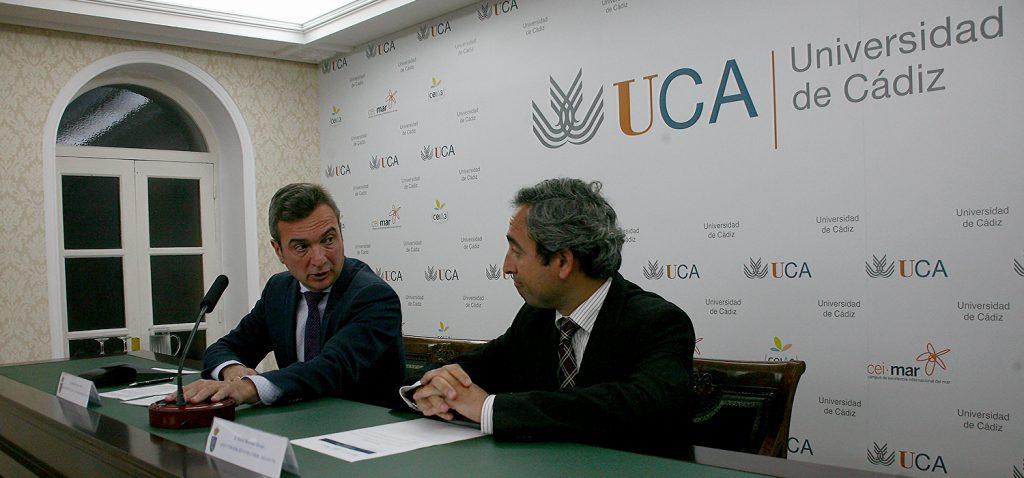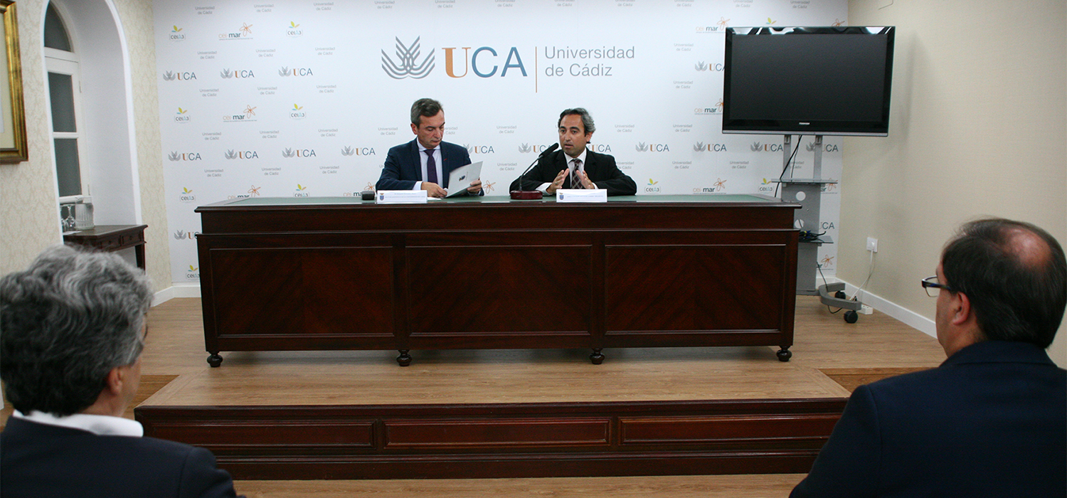 El rector de la Universidad de Cádiz, Eduardo González Mazo, y el director Risk Advisory Cyber de Deloitte Advisory, David Montero, han presentado hoy en el Rectorado los resultados del convenio para el máster en Seguridad Informática (Ciberseguridad) de la UCA que comenzó a impartirse en este curso 2017/18 en la Escuela Superior de Ingeniería del Campus de Puerto Real. Han estado acompañados por el vicerrector de Planificación, Miguel Ángel Pendón, el director de la ESI, Juan José Domínguez, y el subdirector de Relaciones Externas e Innovación Tecnológica de la Escuela, Manuel Palomo.
