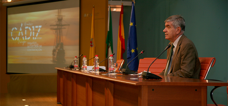 Tras la inauguración, con la presencia del decano de la Facultad, Jacinto Espinosa, el coordinador General del Campus de Excelencia Internacional del Mar CEI·Mar, Juan José Vergara, y la vicedecana de Alumnado y Relaciones Institucionales, Mª del Mar Barrientos, el catedrático de Historia Moderna de la UCA, Manuel Bustos, presentado por el director General de Extensión Cultural y Servicio de Publicaciones, José Marchena, ha ofrecido la ponencia de Cádiz y el traslado de la Casa de la Contratación y el Consulado: claves y consecuencias.
