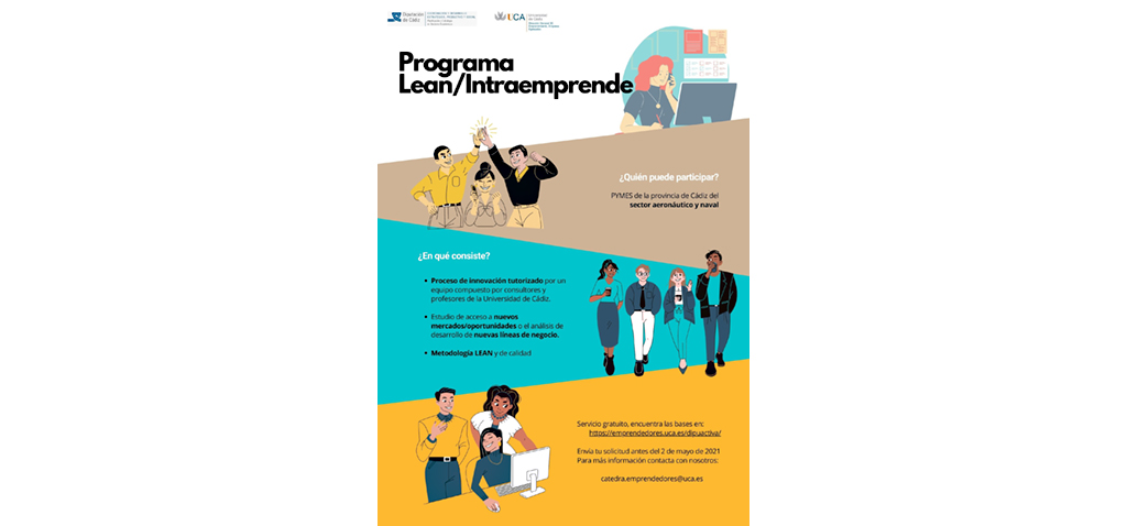 El programa piloto LEAN INTRAEMPRENDE se dirige a pequeñas y medianas empresas de los sectores naval y aeronáutico de la provincia de Cádiz para apoyar sus líneas de intraemprendimiento (procesos integrados para el desarrollo de nuevas líneas de negocio). Concretamente, abren una selección para dos plazas, que recibirán gratuitamente un proceso de innovación tutorizado por consultores y profesorado de la UCA. El plazo de solicitudes está abierto hasta el 9 de mayo en la Cátedra de Emprendedores.