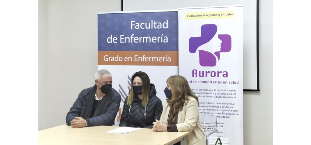 La Facultad de Enfermería de Algeciras ha acogido la presentación del protocolo general de colaboración suscrito por la Universidad de Cádiz, a través de este centro académico, y la Fundación Márgenes y Vínculos para cooperar en la asistencia formativa socio-sanitaria de mujeres migrantes. La vicerrectora del Campus de la Bahía de Algeciras, María del Mar Cerbán, el presidente de la Fundación Márgenes y Vínculos, Francisco Javier Mena, y la decana de la citada Facultad, María del Carmen Paublete, han explicado los detalles de este convenio y, concretamente, del proyecto Aurora, que cuenta con la financiación de la Consejería de la Presidencia, Administración Pública e Interior de la Junta de Andalucía.