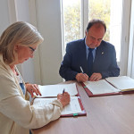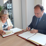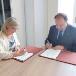 El rector de la Universidad de Cádiz, Casimiro Mantell, y la delegada territorial de Justicia, Administración Local y Función Pública de la Junta de Andalucía en Cádiz, Ana Bertón, han firmado hoy, en el Rectorado, dos convenios de cooperación educativa para la realización de prácticas externas del alumnado universitario en centros y servicios de Justicia en la provincia.