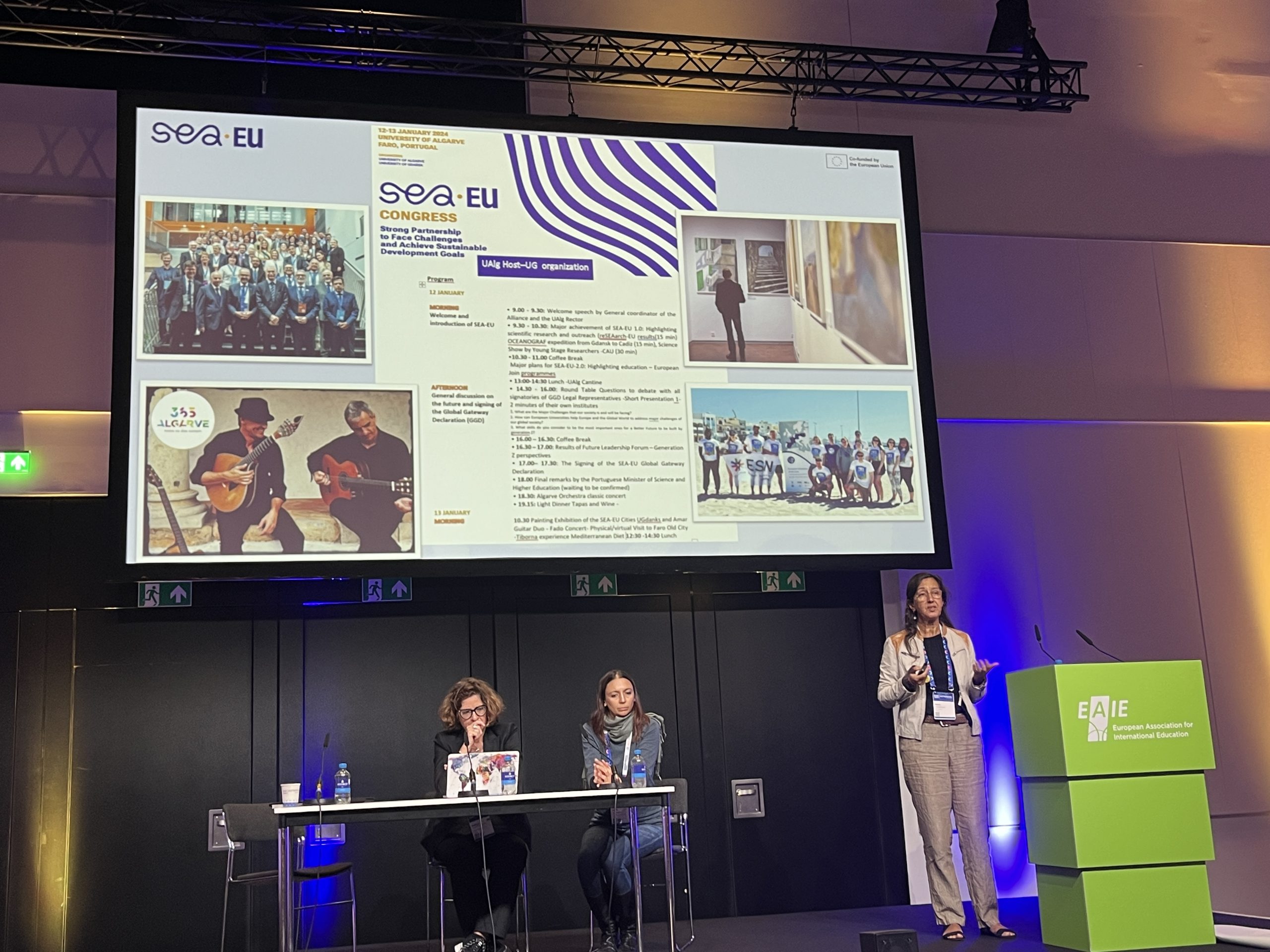 La Alianza SEA-EU estuvo bien representada en varias sesiones, gracias a la participación de dos miembros destacados: Alexandra Teodosio, vicerrectora de la Universidad de Algarve, y Anna Jurkowska, vicerrectora de la Universidad de Gdansk. La primera habló sobre cómo SEA-EU amplía la cooperación más allá de Europa y proporcionó información sobre el próximo Congreso SEA-EU que se celebrará en enero en la universidad portuguesa; así como su homónima polaca destacó cómo las alianzas han añadido valor al ayudar a la comunidad ucraniana y detalló el evento Ukrainian Day desarrollado durante la última semana en su universidad.