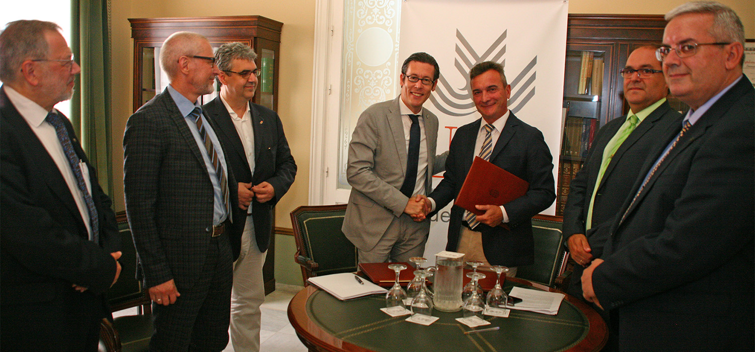 Los rectores de la Universidad de Cádiz, Eduardo González Mazo, y de la Universidad de Ciencias Aplicadas de Frankfurt, Frank E.P. Dievernich, han firmado dos convenios de colaboración con el objetivo de promover actividades conjuntas para el desarrollo de estudios en el marco de los programas doctorales de Ingeniería informática y de Fabricación, materiales e ingeniería ambiental.