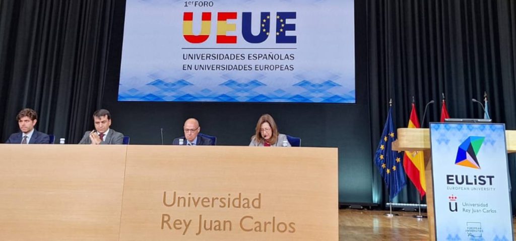 La Universidad de Cádiz ha tenido un papel activo en el primer Foro del Grupo de Universidades Españolas en Universidades Europeas (UEUE), que se celebra entre este martes y miércoles en la Universidad Rey Juan Carlos (Madrid). En este encuentro, organizado en el marco de la Iniciativa de Universidades Europeas, la UCA ha estado representada por la vicerrectora de Internacionalización, Marcela Iglesias; el vicerrector de Títulos y Calidad, Manuel Arcila; la directora general de Títulos Internacionales y Formación Continua, María de Andrés; y el director general de Proyectos Europeos, Fernando Pérez.