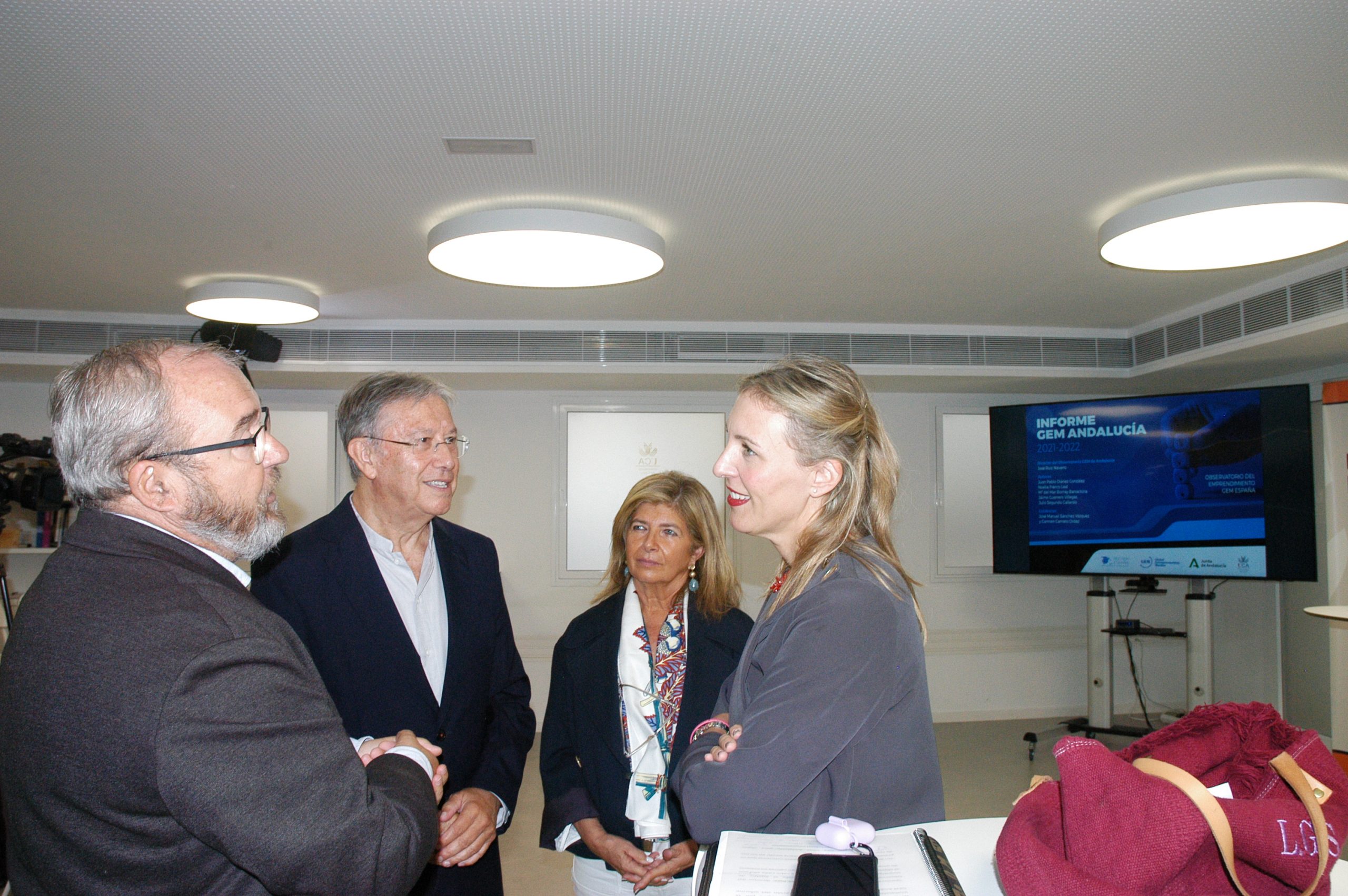 Ruiz Navarro ha destacado que el informe GEM (Global Entrepreneurship Monitor) ofrece una visión general de los principales indicadores reportados para analizar el contexto emprendedor de nuestra región, las diferentes fases del proceso emprendedor, el perfil de las personas que emprenden y el potencial de las iniciativas emprendedoras. La vicerrectora de Política Científica y Tecnológica de la UCA, Mª Jesús Mosquera, junto al director General de Emprendimiento, Empresa y Egresados, José M. Sánchez, y la delegada territorial de Cádiz de la Consejería, Mª Isabel Paredes, han participado en el acto celebrado en el Centro de Transferencia Empresarial El Olivillo.