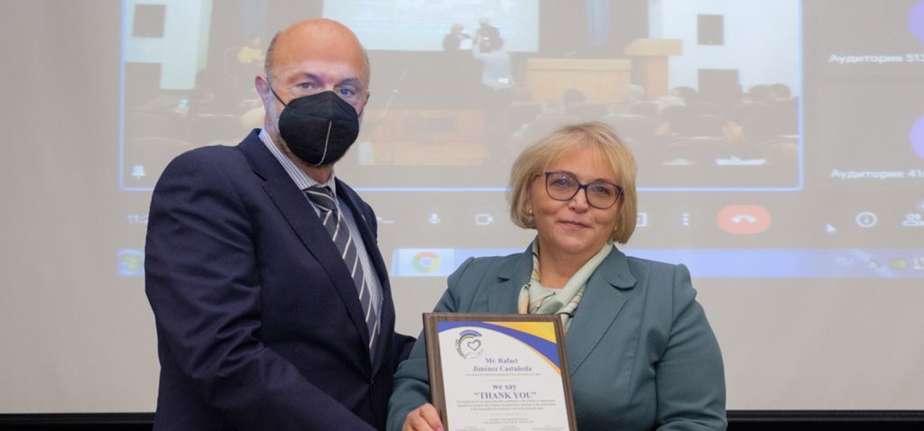 En lo que toca a la Asamblea de los Pueblos de Eurasia, la UCA ha sido reconocida como socio principal europeo e interlocutor directo de la Asamblea con Latinoamérica y Norte de África, recibiendo además Jiménez Castañeda su credencial como recién nombrado vicesecretario general de la Asamblea. Se ha avanzado sobre los detalles de la futura sede física de la Asamblea en el Centro Universitario Internacional para Europa del Este y Asia Central de la Universidad de Cádiz, así como sobre el futuro desarrollo del proyecto específico de cooperación internacional y voluntariado que ambas instituciones llevan a cabo desde el pasado mes de julio, siendo el primer proyecto en esta esfera desarrollado por la Oficina de Cooperación Internacional de la UCA y cuya calidad y utilidad ha sido reconocida por varias instituciones, entre ellas, el Cádiz C.F. con la concesión de un Premio dentro de la campaña Playas Azules y Amarillas.