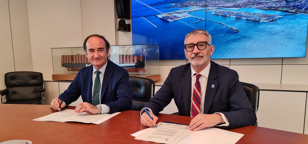 El presidente de la Autoridad Portuaria de Bahía de Algeciras, Gerardo Landaluce, y el rector de la Universidad de Cádiz, Francisco Piniella, han presentado hoy el convenio rubricado por ambas partes para el desarrollo de nuevos itinerarios formativos en logística de terminales portuarias e intermodalidad. Estos estudios de posgrado se enmarcan dentro del nuevo máster oficial en Logística y Gestión de Operaciones que imparten las universidades de Cádiz, Sevilla e Internacional de Andalucía desde este curso académico 2022/23.