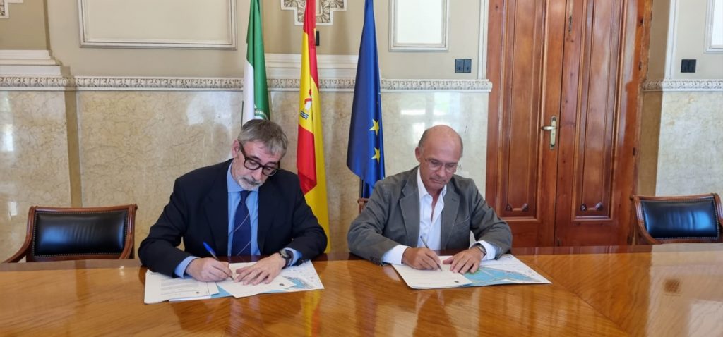 El presidente de la Autoridad Portuaria de Málaga, Carlos Rubio, y el rector de la Universidad de Cádiz, Francisco Piniella, han firmado hoy un convenio para el desarrollo de nuevos itinerarios formativos en logística de terminales portuarias e intermodalidad. Estos estudios de posgrado se enmarcan en el nuevo máster en Logística y Gestión de Operaciones que impartirán las universidades de Cádiz, Sevilla e Internacional de Andalucía a partir del próximo curso 2022/23.