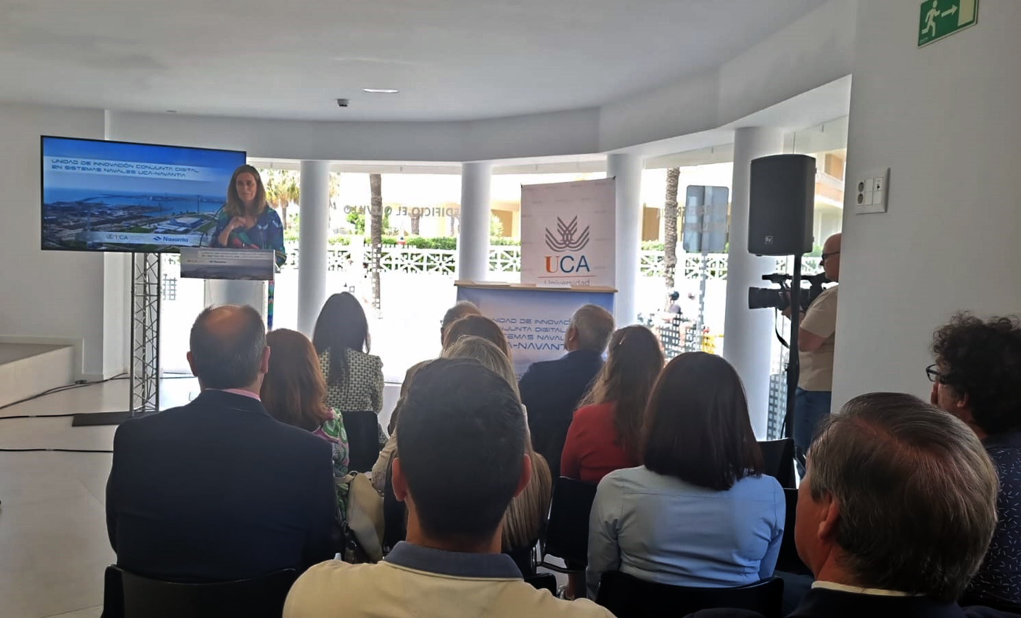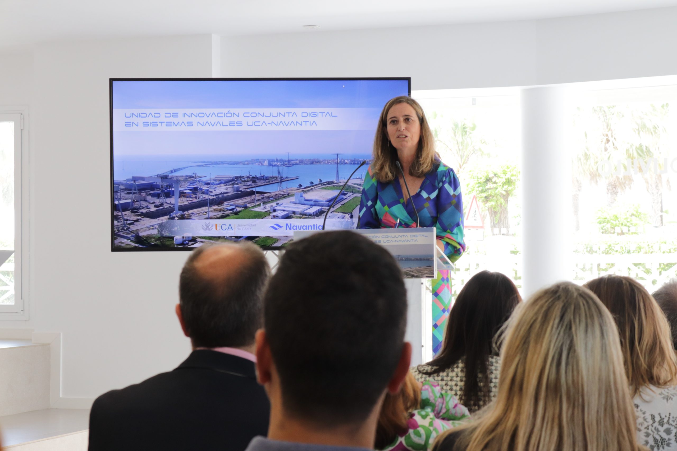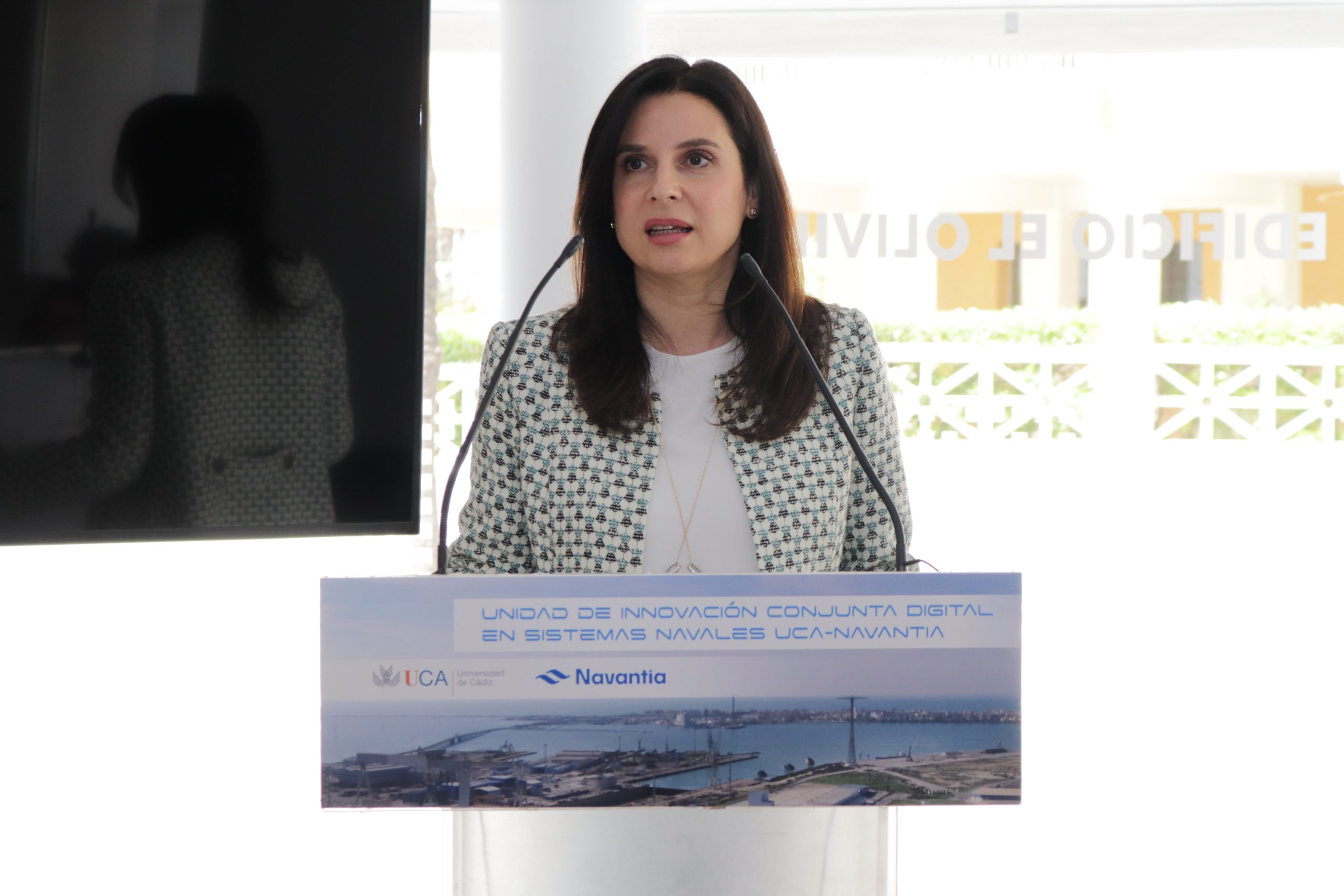 La vicerrectora de Política Científica y Tecnológica de la UCA, María Jesús Mosquera, ha presidido el acto, en el Centro de Transferencia Empresarial El Olivillo, en compañía de la directora de NAVANTIA Sistemas, Cristina Abad, el responsable del Centro de Excelencia de Sistemas Navales, Juan Jesús Carretero, y un gran número de autoridades.