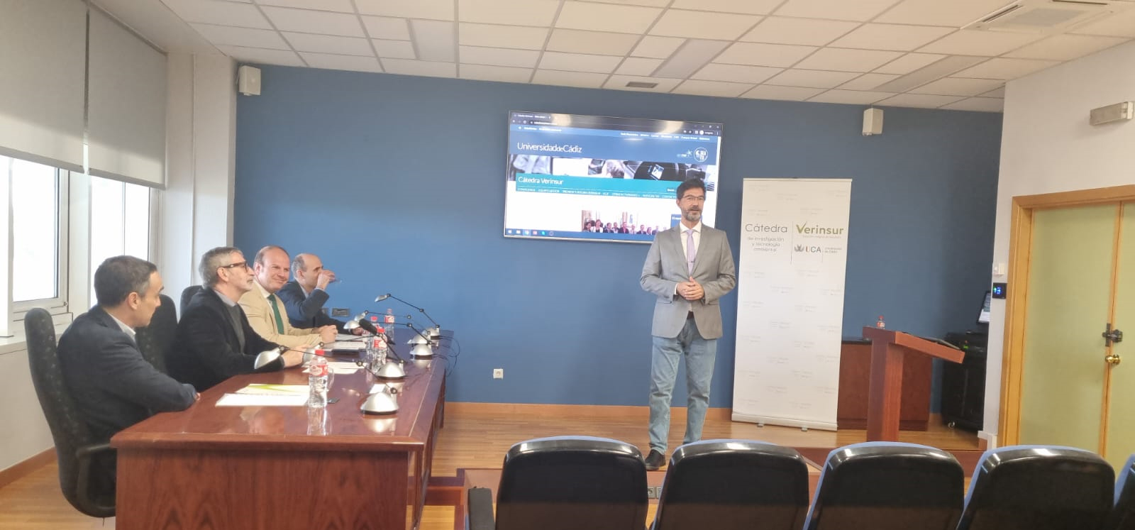 El rector de la Universidad de Cádiz, Francisco Piniella, ha presidido hoy en compañía del delegado territorial de Sostenibilidad, Medio Ambiente y Economía Azul de la Junta de Andalucía, Óscar Curtido, el director de Admisión de Verinsur y coordinador de empresa de la Cátedra, Sergio Gil, y el director de la Cátedra, José Luis García Morales, la entrega del VII Premio Cátedra Verinsur- UCA en el Campus de Puerto Real. El proyecto ‘Vertedrón: Uso de sensores embarcados en drones para una gestión mejorada en vertederos’ ha ganado esta edición.