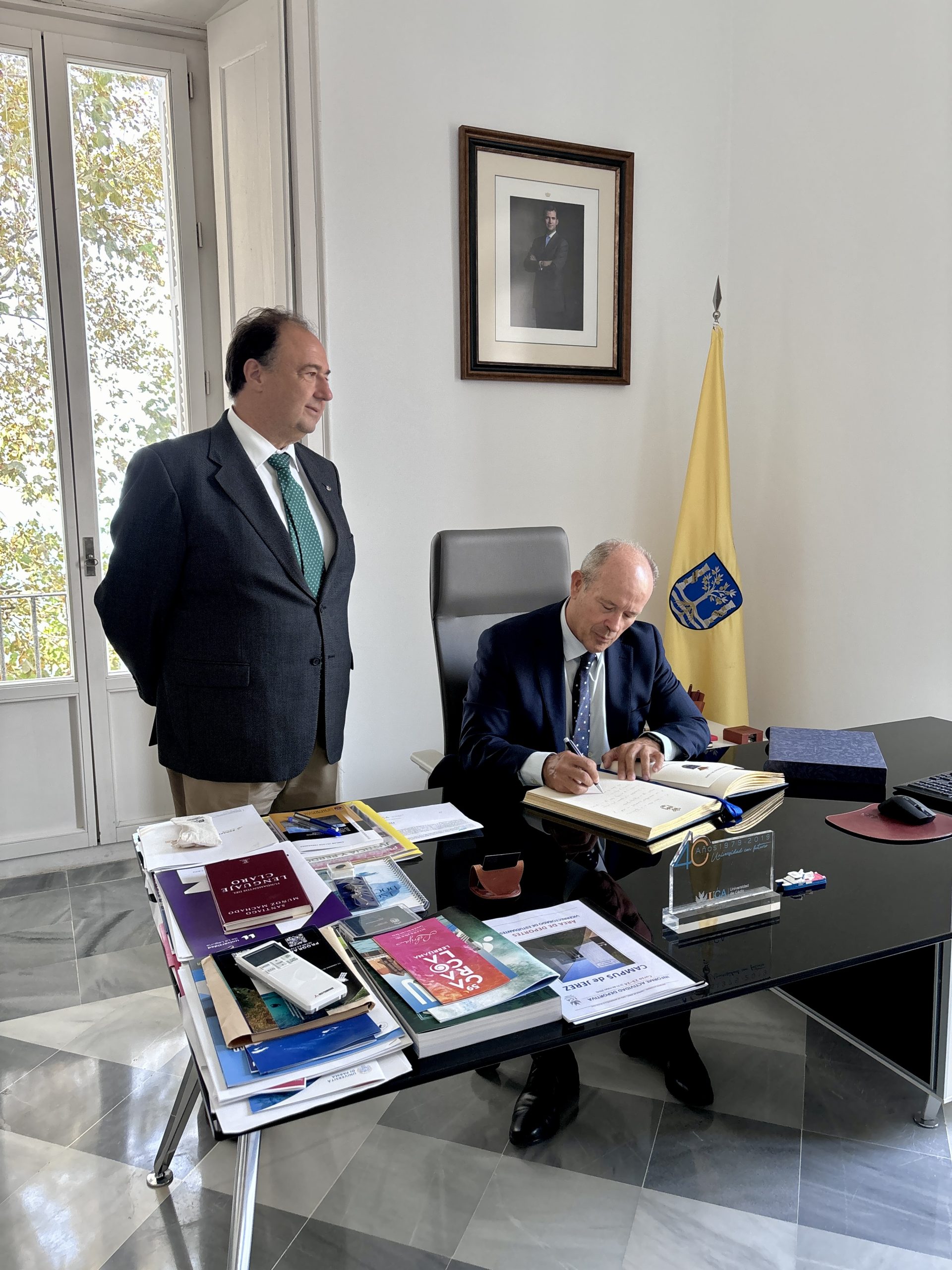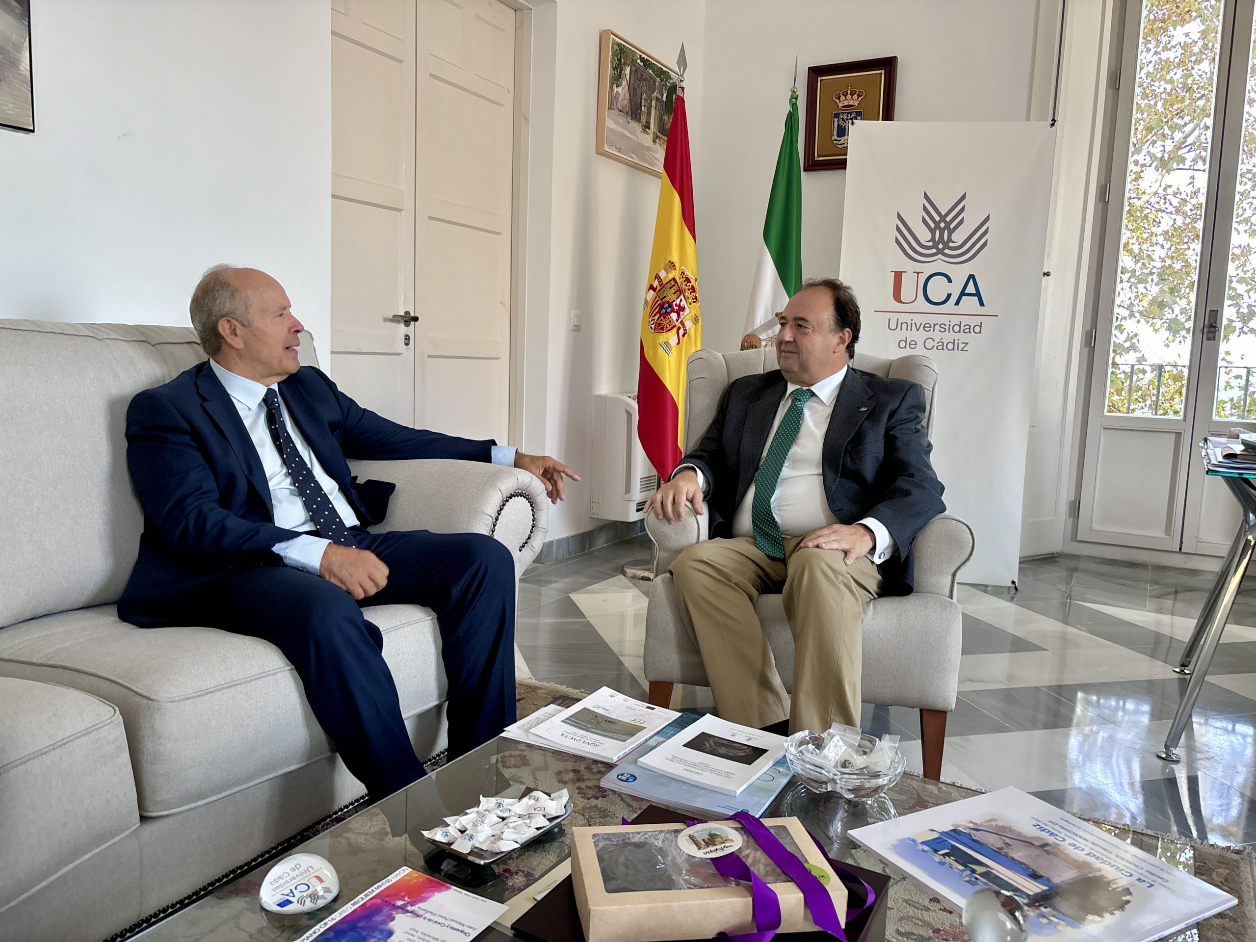 El rector de la Universidad de Cádiz, Casimiro Mantell, se ha reunido con el magistrado del Tribunal Constitucional, Juan Carlos Campo Moreno, en el Rectorado. Durante este encuentro, que forma parte de los contactos institucionales que el rector mantiene con personalidades de la vida política, cultural y social, analizaron temas de actualidad que afectan a la universidad y la investigación, al tiempo que conversaron sobre los retos que afronta la Universidad de Cádiz.