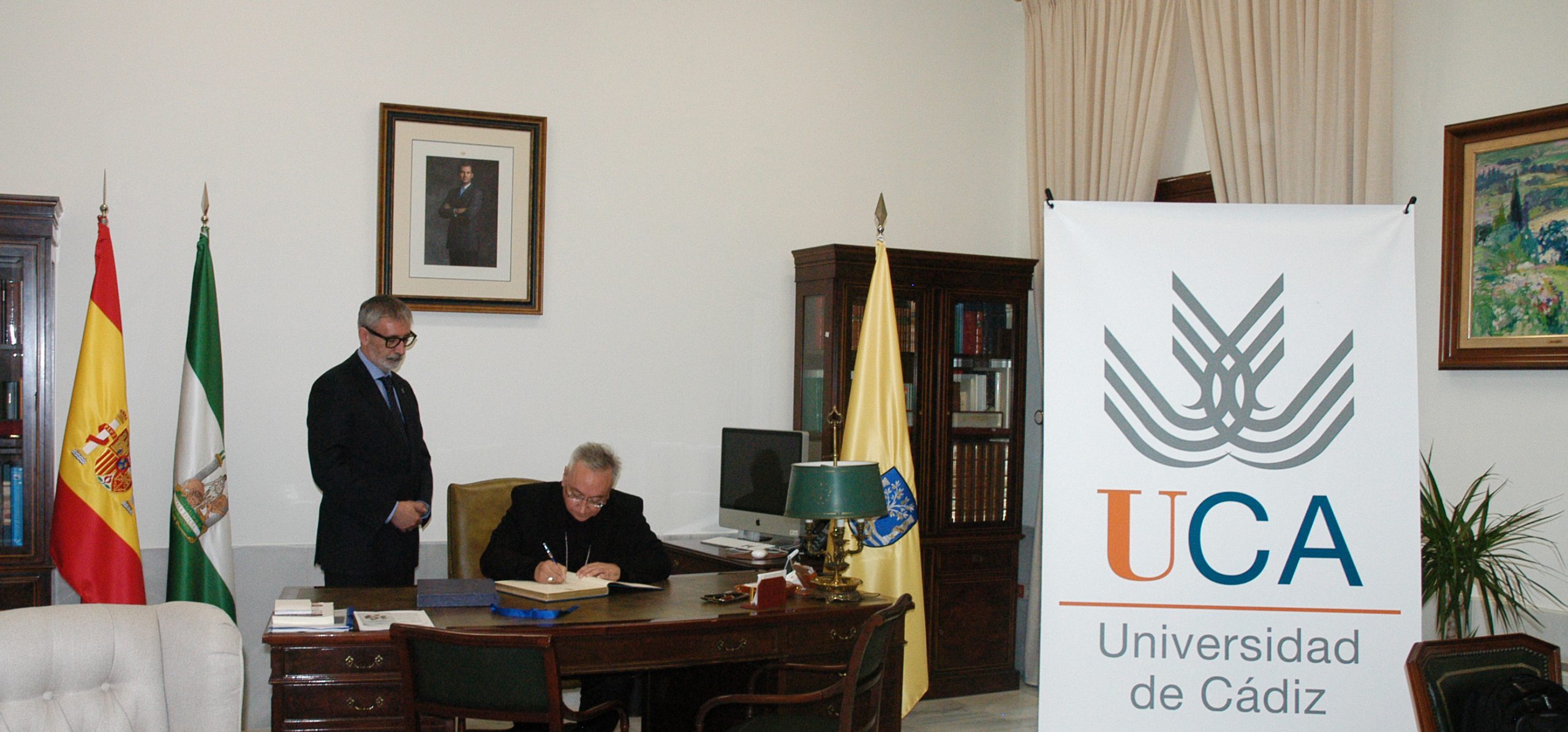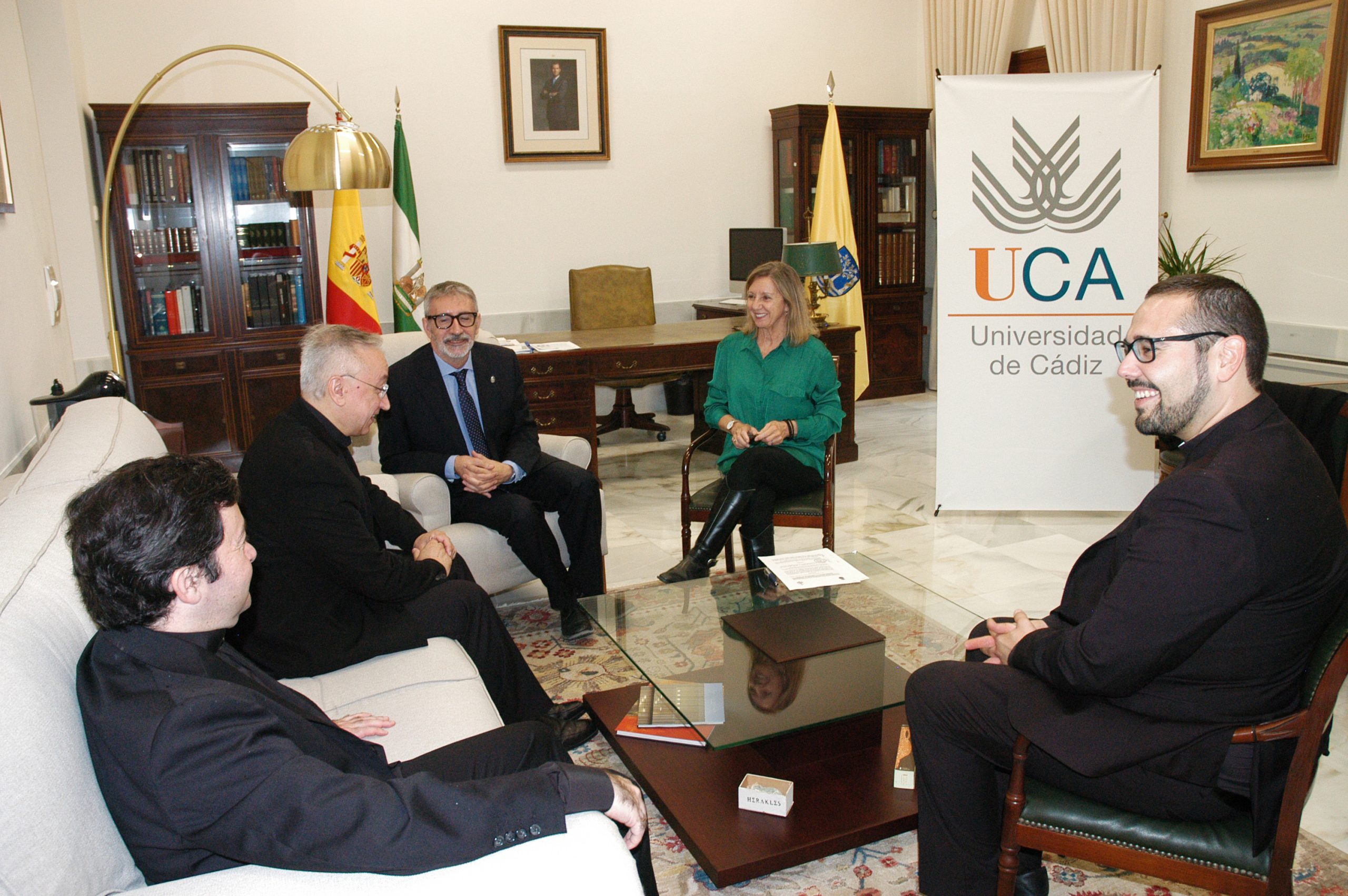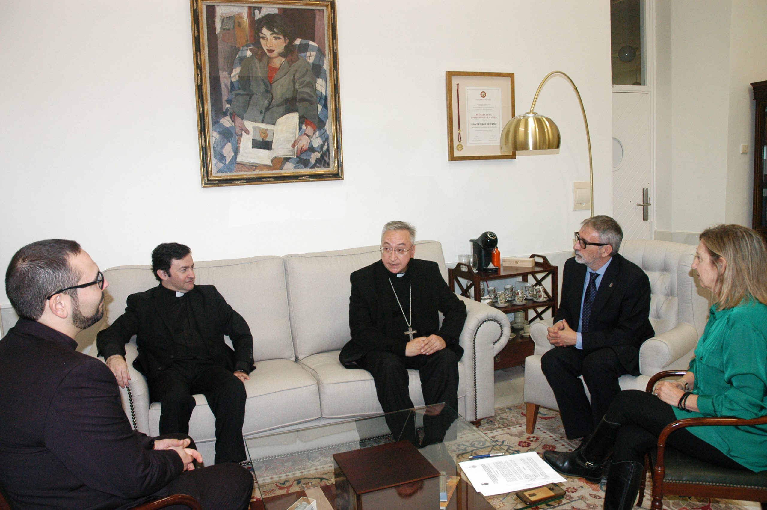 El encuentro, que ha servido para analizar las relaciones entre ambas instituciones y que se ha desarrollado en el Rectorado de la Universidad de Cádiz, ha contado, además, con la presencia del vicario episcopal para Asuntos Jurídicos y las Relaciones Institucionales, Miguel Ángel Montero, del delegado de Pastoral Universitaria,Juan Azcárate, y de la directora General de Relaciones Institucionales de la UCA, Mamen Gómez.
