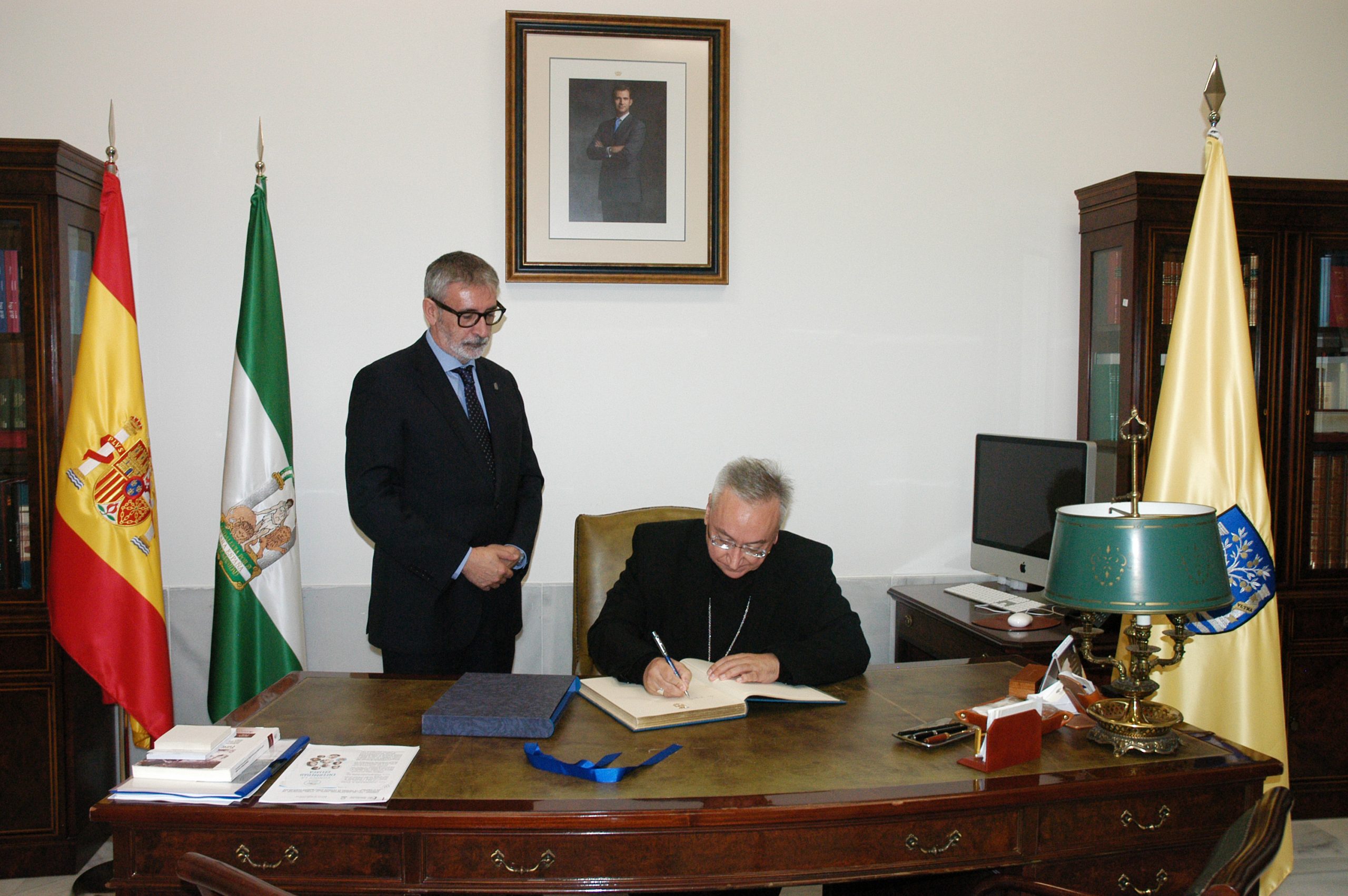 El obispo de Asidonia-Jerez, monseñor José Rico, se ha reunido hoy con el rector de la Universidad de Cádiz, Francisco Piniella. Se trata de su primera visita institucional a la UCA.